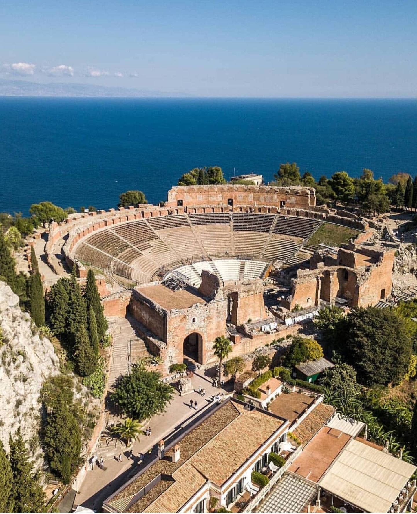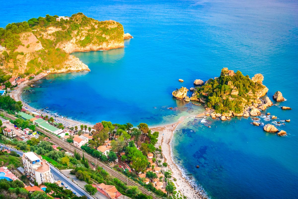 Taormina (Latin: Tauromenium; Ancient Greek: Ταυρομένιον, romanized: Tauroménion) is a comune (municipality) in the Metropolitan City of Messina, on the east coast of the island of Sicily, Italy. Taormina has been a tourist destination since the 19th century. Its beaches on the Ionian sea, including that of Isola Bella, are accessible via an aerial tramway built in 1992, and via highways from Messina in the north and Catania in the south. On 26–27 May 2017 Taormina hosted the 43rd G7 summit.